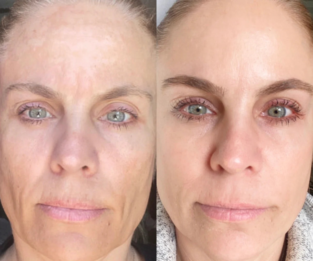 Deeper wrinkles appear reduced. Skin looks visibly younger and more resilient.